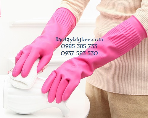 2. Găng tay cao su rửa bát loại dài tay: Găng tay có đặc điểm dài đến khuỷu tay. Có size S, M dàng cho tay nhỏ, size L, XL dành cho bàn tay lớn.